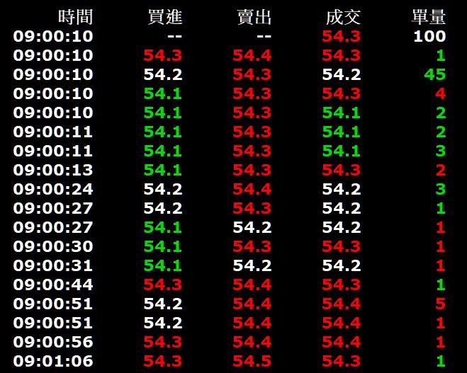 以2606和11/26的交易明細來, 第一分的K線總共有17筆交易, 而我用 XS print 出來只有四筆, 且價格 54.3 -> 54.4 -> 54.1 -> 54.4 怎麼也對不上來!