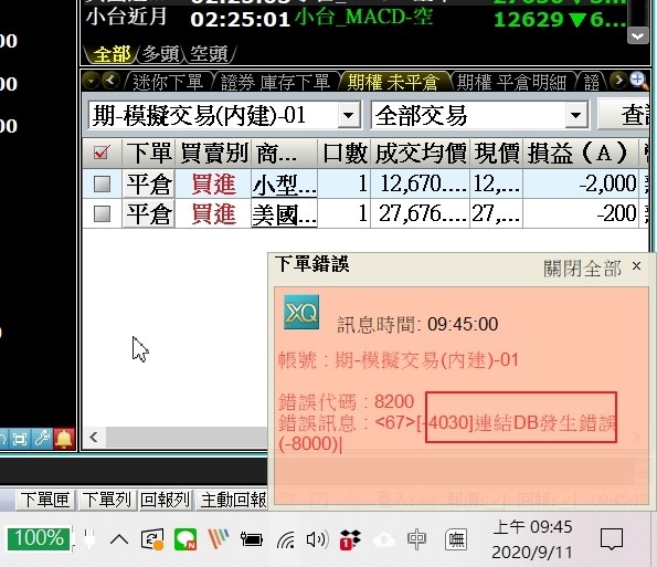 今日發生連結db錯誤後,就無法平倉了。請問如何處理
