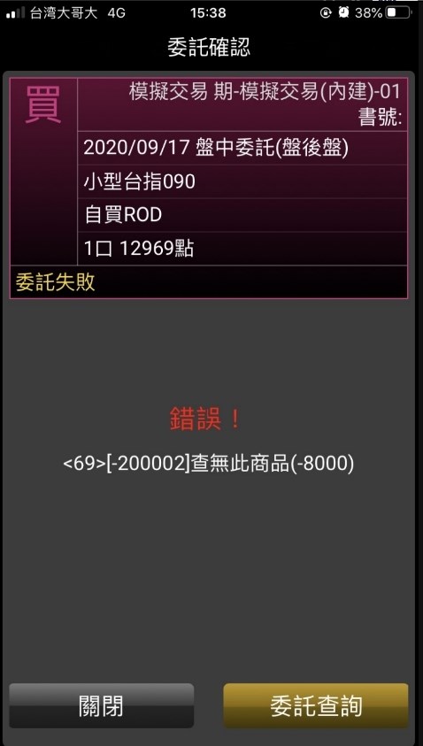 類似情形如下圖,平倉時「無此商品」。