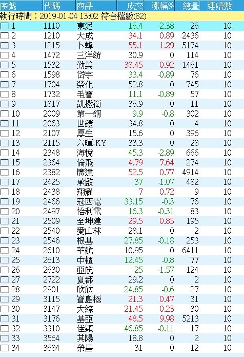 經選出的個股對照指標後發現很多個股根本不符合條件『RSI>50 *10日』;
