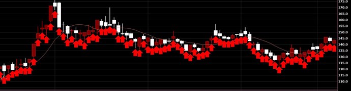這樣就可以在10天最高價都低於平均線的Bar上作標記。