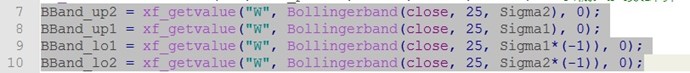 您好,請問一下策略裡週頻率的布林函數上下軌道寫法是否可以如下? (Sigma2 and Sigma1 已宣告)