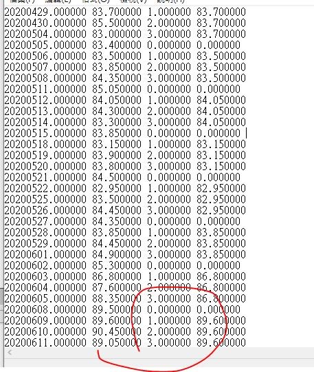 input:_BuyOrSell(1,"1進場,2出場"); var:bcost(0),bdate(0),_switch(0); if close >0 and bcost=0 then begin bcost=close; end; if bcost <> 0 and date<>date[1] then value5 +=1; if value5=4 then begin value5=0; bcost=0; Ret=1; end; print(date,close,value5,bcost);