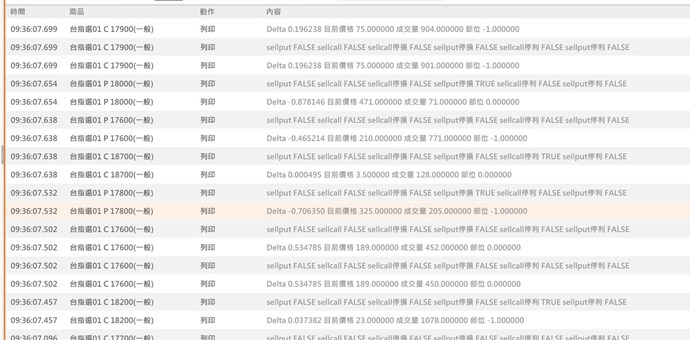 print("Delta",value1,"目前價格",close,"成交量",GetField("成交量", "D"),"部位",Filled, "期望部位", position);