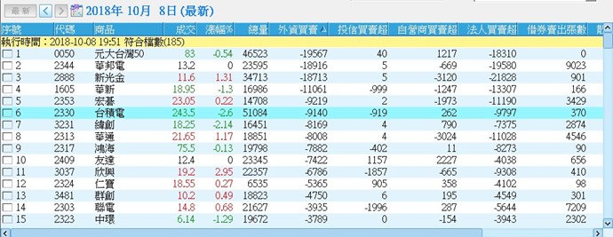 晚上約8點執行選股,但三大法人資料還是昨日的,