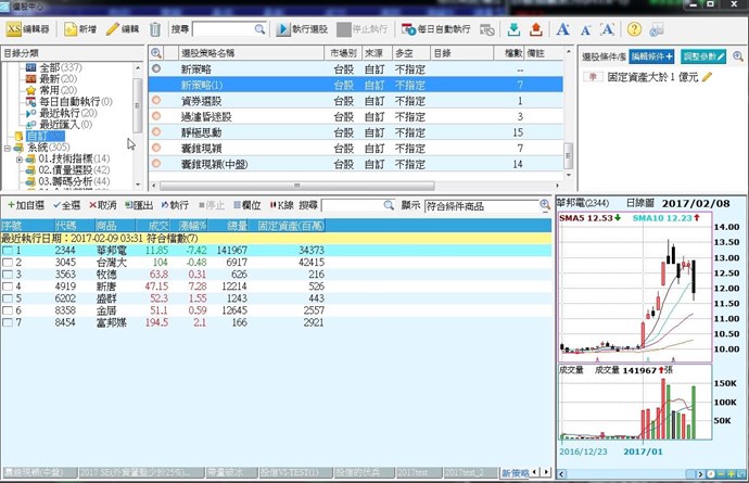 我好奇就用單一條件(固定資產大於1億)+普通股全部(系統)進行篩選