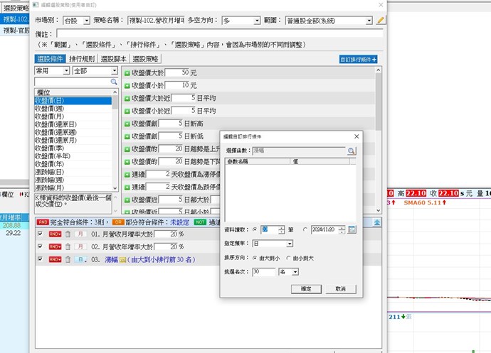 因為該排序條件並非排序 月營收月增率大於20% 的結果,而是排序策略的執行商品。
