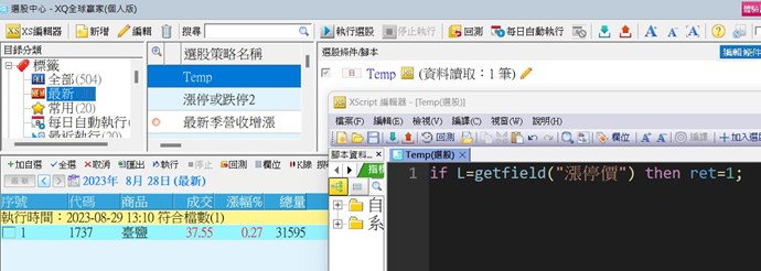 程式只有一行, 選出昨天一價到底漲停的股票, 但選出來的資料錯誤, 不知道我的電腦出了什麼問題?