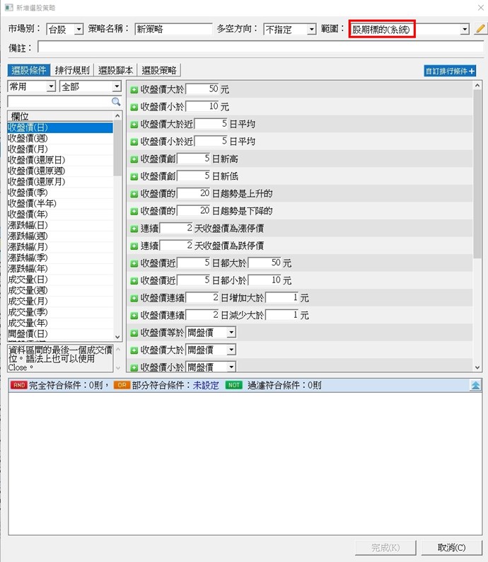 您可以在選股策略使用 GetSymbolInfo("有期貨") 確認是否有股期,