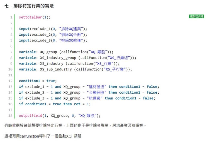 2. 可否提供官網上語法中提及的函數function: XQ_類股 XS_行業組 XS_行業 XS_子行業