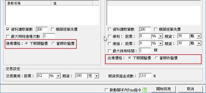 進場價格增加「當期最高價」與「當期最低價」,可模擬追高或破底進場情況。
