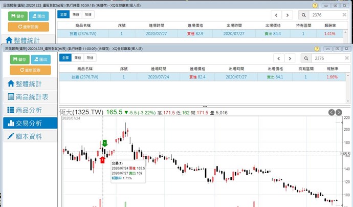 附圖2: 加入策略腳本後的創意進場數大幅減少(除權息不至於影響,是進場不知道為什麼很多改進的地方都沒動作)