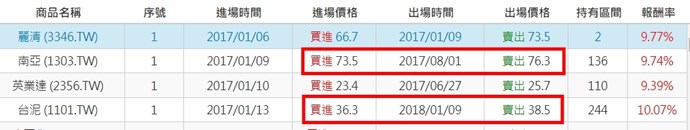 而還原日的進場為76.76, 出場為84.86,報酬為10.13%,也是設定的10%出場,這個沒爭議,因為該價格已經加了除權息的部分