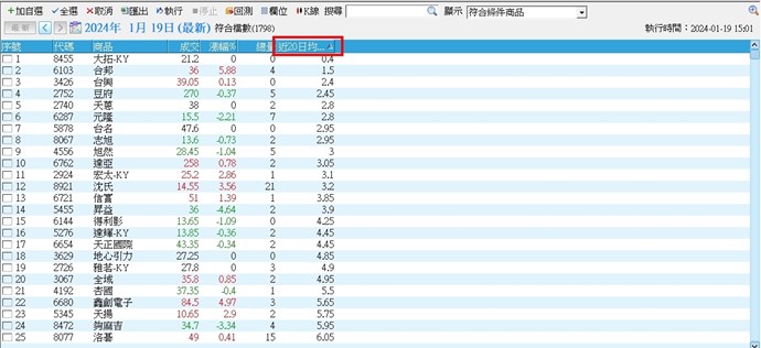 另外,您也可以在您的腳本加上outputfield1(Average(Volume, 20), 2, "近20日均量");這行,但是要注意SetTotalBar長度即可,