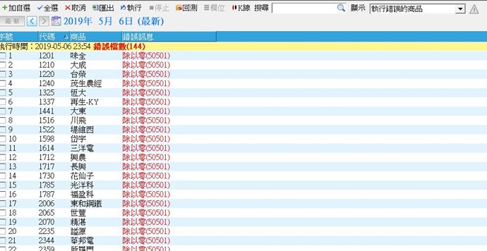 我的這段程式碼跑出的結果會有缺項,顯示結果執行錯誤除以零,