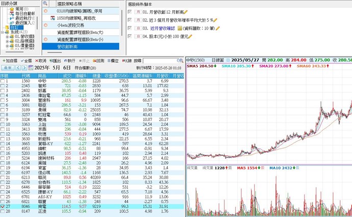我想請問我的選股策略在5/6時有出現在名單內,但似乎與我的XS語言表現得不太一樣,我的XS有設下條件收盤價要大於EMA60,但當天選出來的股票卻有收盤價小於EMA60的狀況,請問是甚麼問題,附上照片圖解