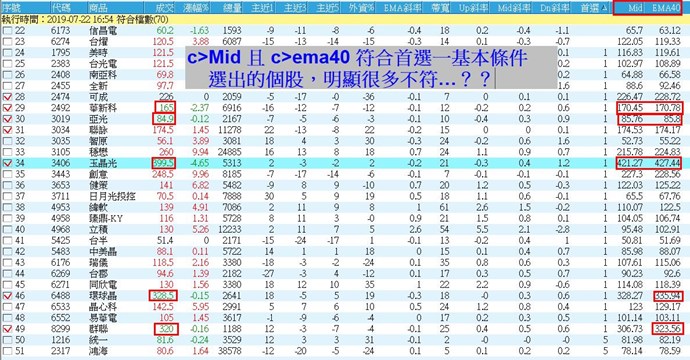 故計算出來的EMA40這個數值有誤,導致選股有些落差,