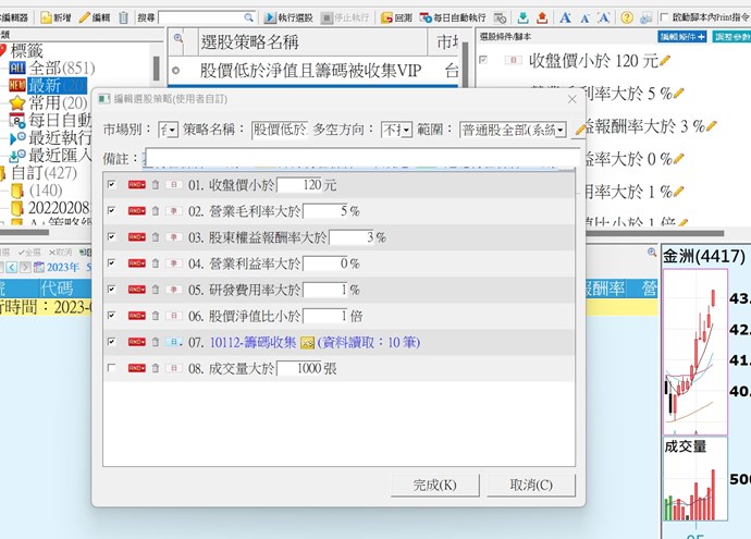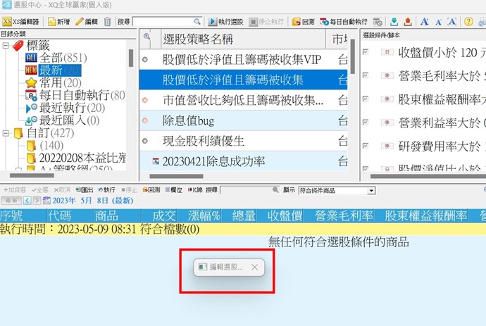 您好,關於先前反應選股編輯畫面問題,目前官網有提供更新的3.10.03版本(日期為230613),煩請協助重新下載安裝再試看看。