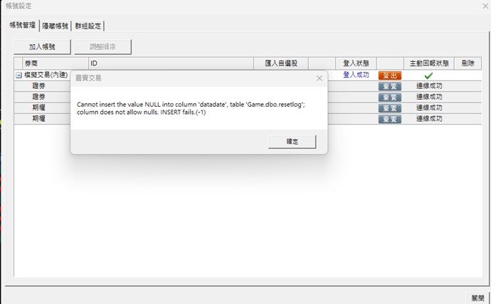 錯誤訊息:Cannot insert the value NULL into column 'database', table 'Game.dbo.resetlog';