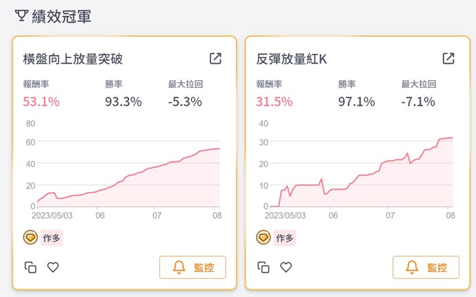 量化積木的績效冠軍,感覺真是厲害,勝率竟然高達93.3%