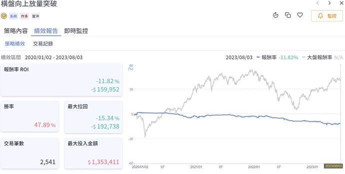 但這邊就有個問題了,怎麼前面顯示的績效會跟策略設定的不同呢?兩個不是應該一樣的嗎?那我們自己的策略首頁顯示的績效,有沒有可能也跟自己的策略內容不同?而是顯示某次的設定結果呢?