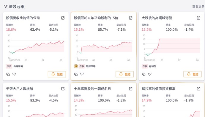 外面顯示的報酬率/勝率等數值是該策略回測3年(2020/01/02)長度後,計算過去 3M/6M/1Y/2Y/3Y 內出場的交易所得出的結果。