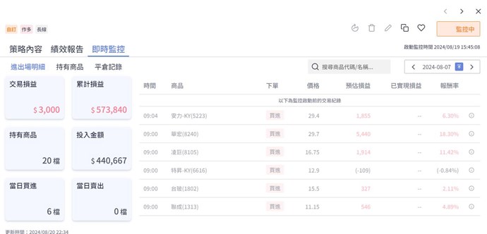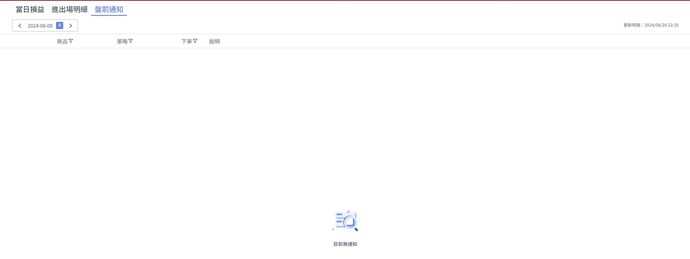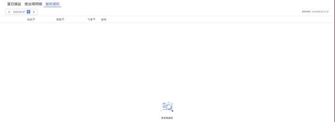 需注意若策略中使用到盤中條件的話,那麼盤前通知運算時是不會觸發的。