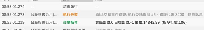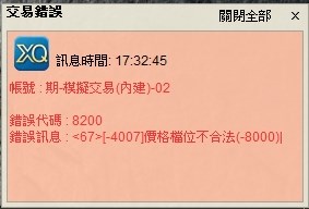 錯誤代碼:8200 錯誤訊息:<67>[-4007]價格檔位不合法(-8000)