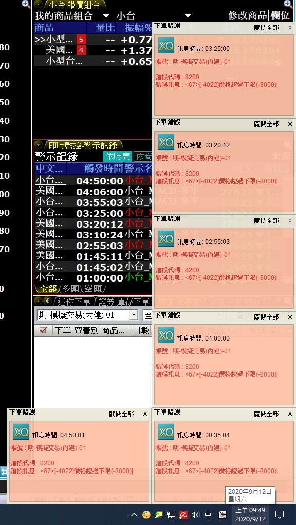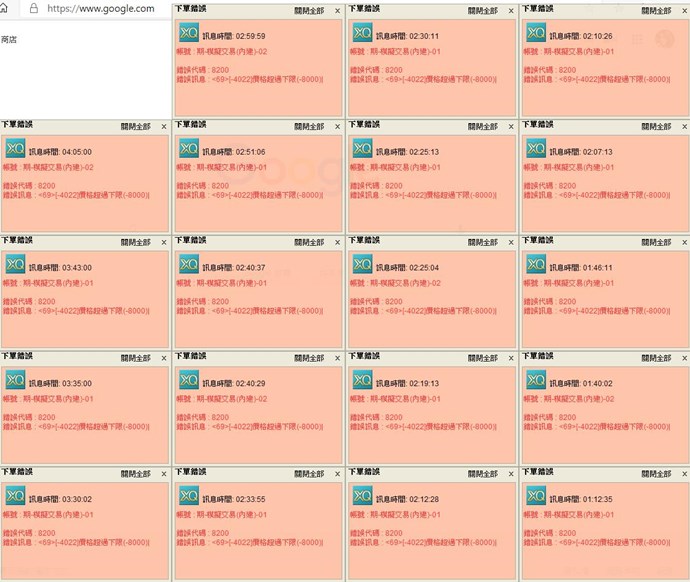 我每次用模擬帳號測試新策略時 在星期六的凌晨都會瘋狂跳出錯誤訊息8200