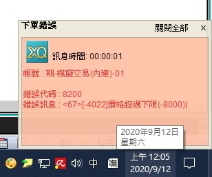 你好,我使用XS自動下單,常常在觸發雷達時,會有時候會跳出這個錯誤,而且是連續發生,像今晚每次觸發時就發生造成無法下單成功,