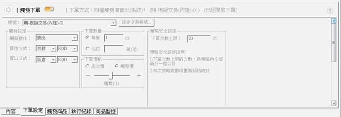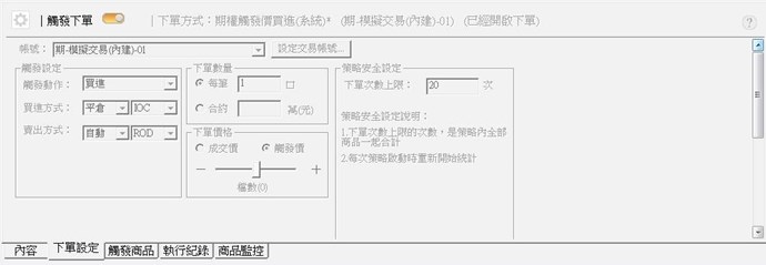為協助確認及排除問題,請再提供您模擬下單的條件,