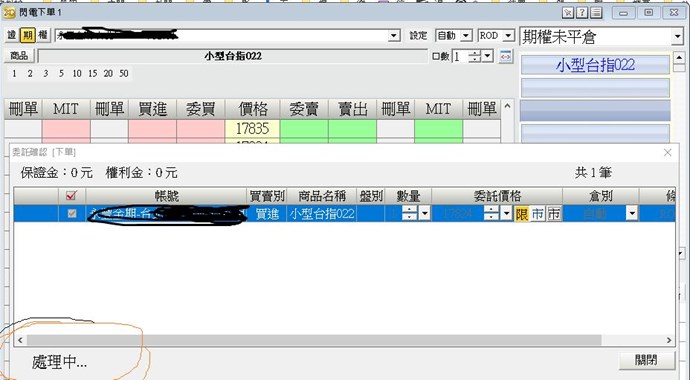 如圖,近日發現小台指在閃電下單時,不能即時反應,停在"處理中"數秒,造成滑價損失?原因何在?謝謝!