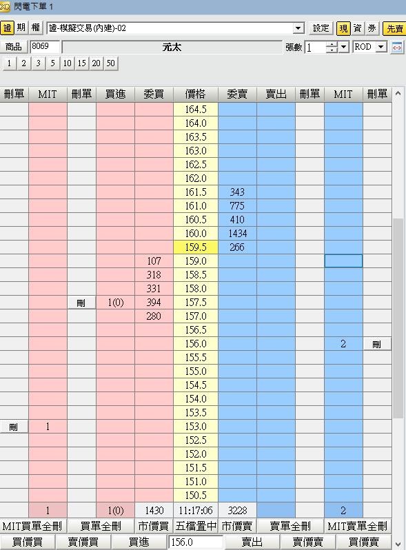 2.在156用先賣方式賣出二張(累計:+1-2= -1)