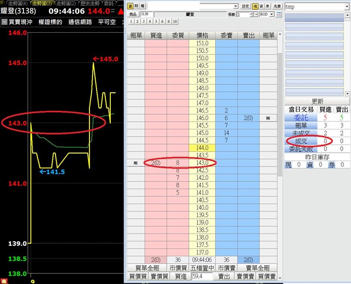 閃電下單應該要顯示2(2) 右邊成交應該顯示2張