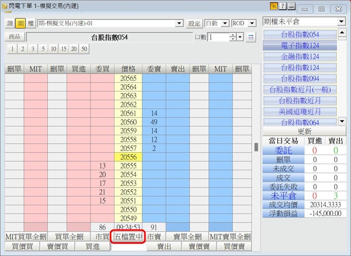 台指快市時 閃電下單的5檔上下急速滾動