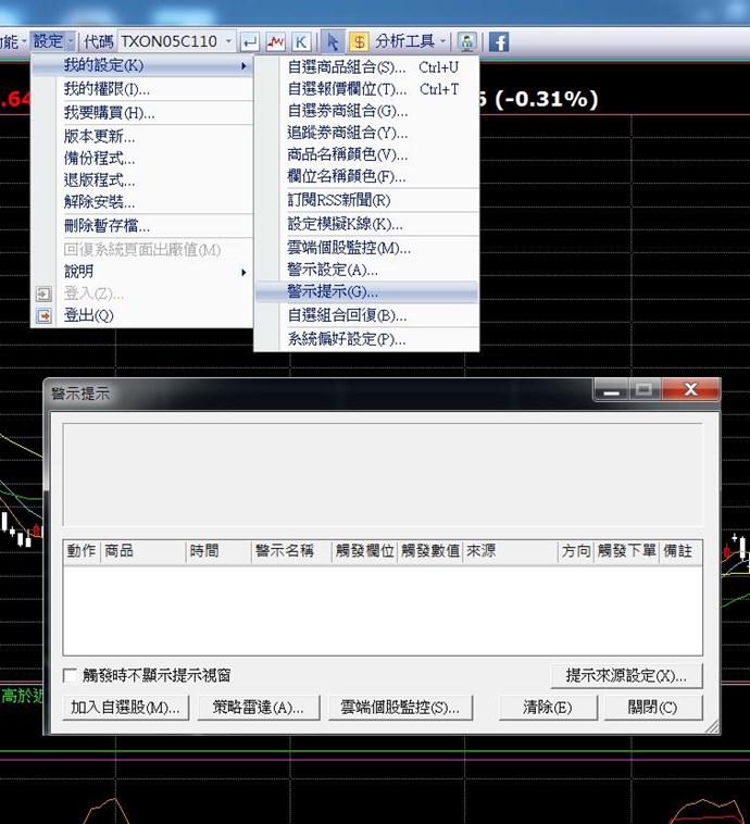 希望盤中策略雷達警示符合以下條件時,就跳出來通知