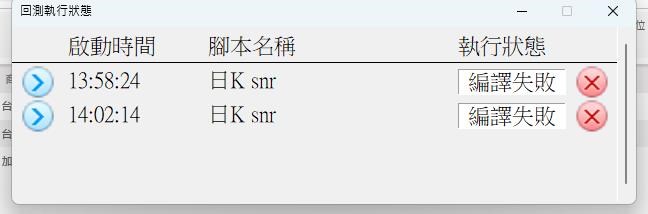 當程式碼已經完成了編譯 ,且成功匯入當執行回測,顯示出編譯錯誤有請各位 幫忙解惑 感謝各位
