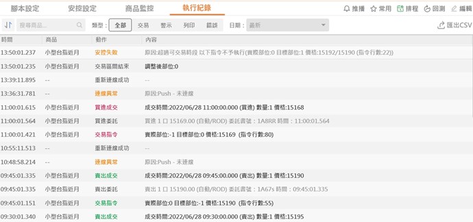 我的策略是用在小台全日15分K 在盤中的買進賣出訊號都有執行