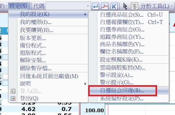 您好,退版時會詢問是否回復User folder與XS folder(因若新版有異動結構,降版時要使用原本的內容,不然頁面或是XS會無法使用),自選股組合並不在退版回復的指令內,而是另外有項目可以選擇執行回復。