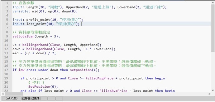 若還沒打到上軌或下軌 但已經達到停損或停利點時 則平倉