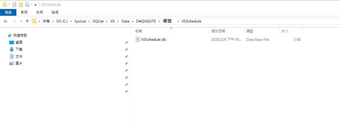 路徑如下:C:\SysJust\XQLite\XS\Data\DAQXQLITE\(您的帳號)\XSSchedule