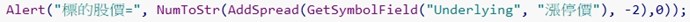 語法如下圖,不知道寫法上有無錯誤,因為取得的是權證的價格,而非標的股票的價格