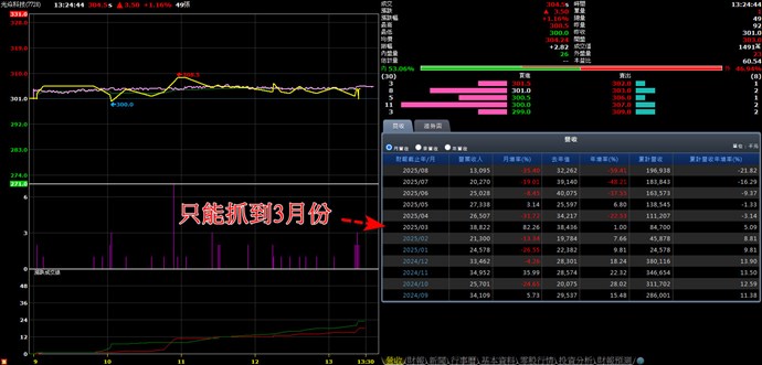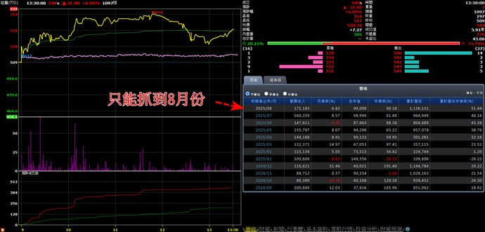 在系統裡有營收資料但標示藍色的部分.透過XS使用getfield("累計營收年增率","M")[i]卻抓不到資料