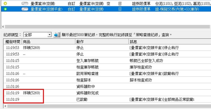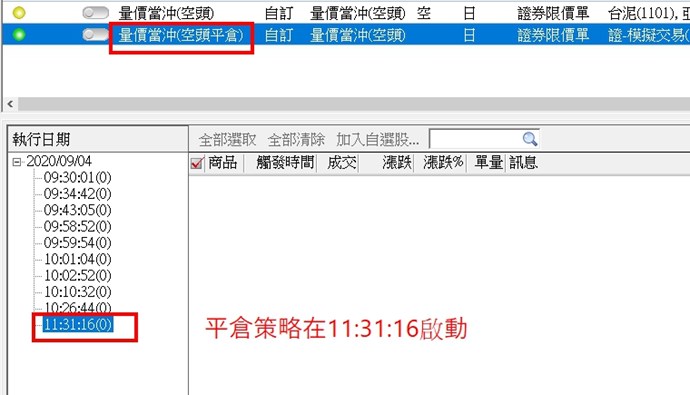 因為以你的截圖看起來平倉策略是連庫存的,如果您的庫存沒有聯上發