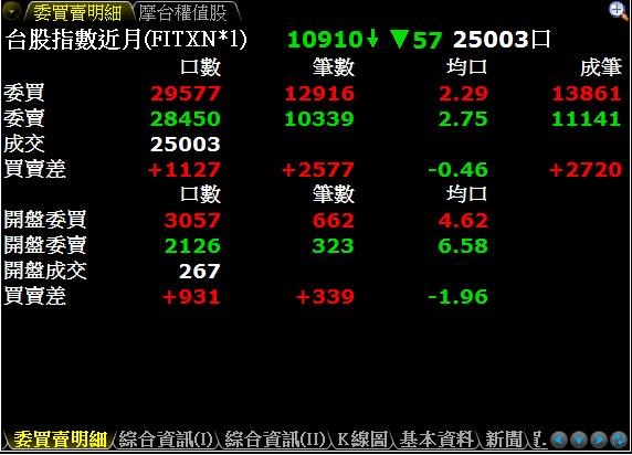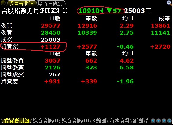 買賣差是買-賣的數字,例如開盤委買是3057 、開盤委賣是2126 ,兩者相減是931 = 買賣差