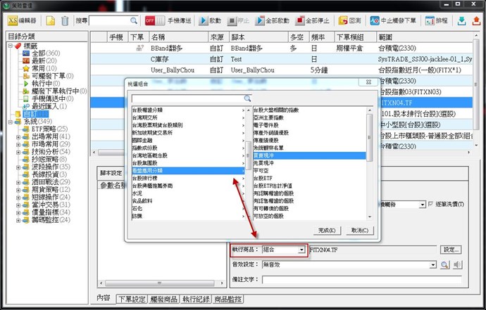 請您試試看用策略雷達執行商品-->組合-->看盤應用分類-->買賣現沖,這部分的組合商品應該可以排除您的狀況,如下圖,呈請您先試試看可否排除,謝謝。