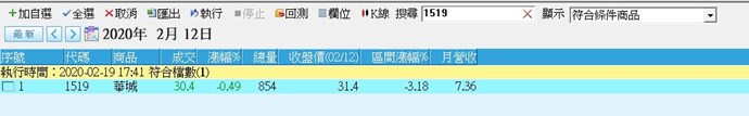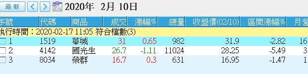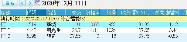 請問選出來的股票,是否有資料錯誤? 為何華城在2/10.11有出現,但2/12會篩掉呢? 同理,2/10的榮群到了2/11也不見了。2/11的華城在2/12也不見。