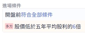 進場的條件為 內建的 股價低於五年平均股利的6倍