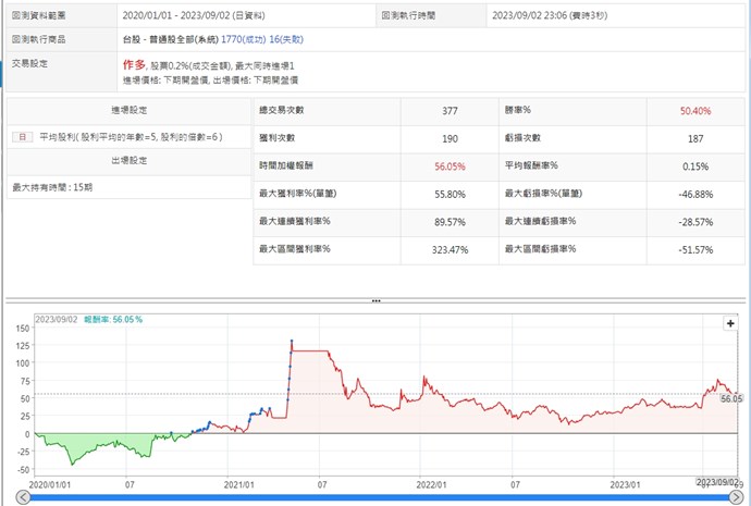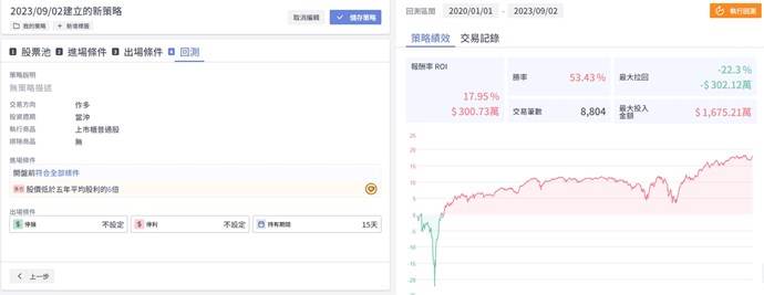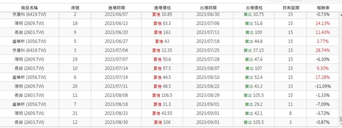 以下為回測結果,持有的天數為15天