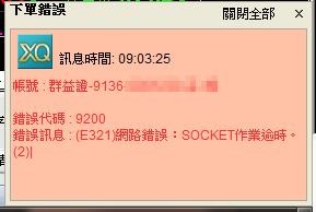 盤中常出現『行情揭示延遲警告』和偶爾會出現的『錯誤代碼:9200』該怎樣排除?